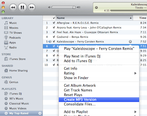 下 図書館 iTunesの左パネルのセクションをクリックし、 音楽鑑賞に。 M4A曲を含むアルバムを選択します。 これにより、アルバムのすべての曲がリストされます。 変換したいすべてのM4A音楽にチェックを入れてクリック 高度な。 その後、をクリックします MP3バージョンを作成。 これにより、M4AファイルがMP3に保存され、デバイスのiTunesフォルダーに保存されます。