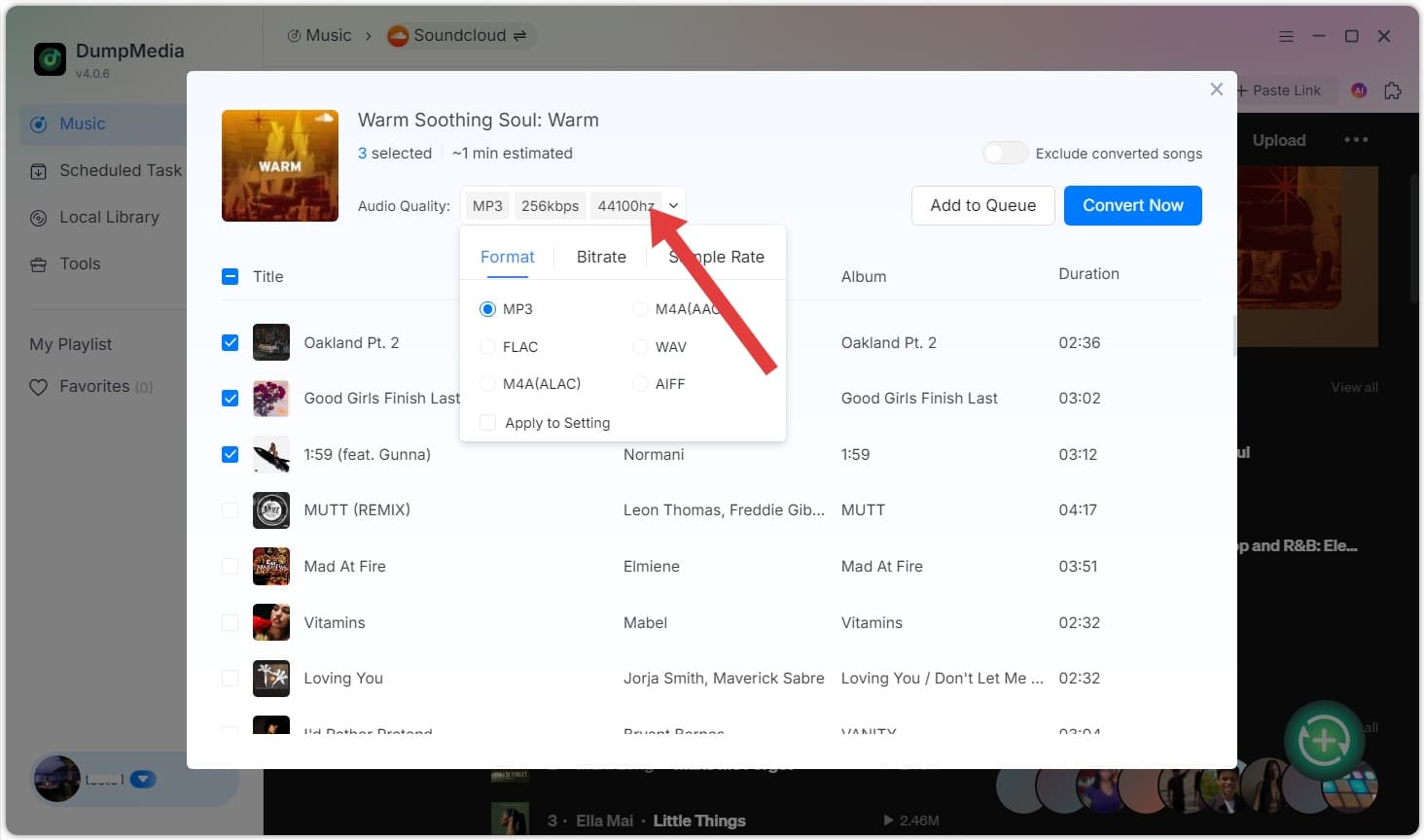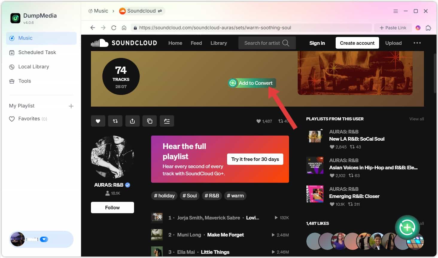 DumpMedia SoundCloud Music Converterを使えば、SoundCloudの曲を高品質かつ高速にダウンロードし、様々なフォーマットに変換できます。以下の手順に従ってください。