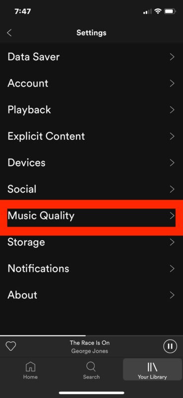 「音楽の品質」というセクションに移動します。 さて、 自動、低、通常、高、および高から選択.