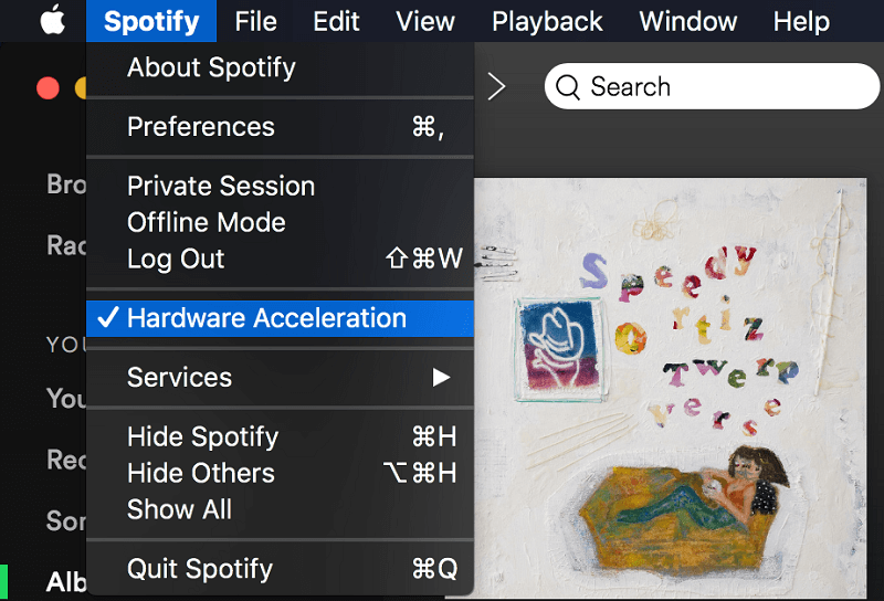 ハードウェアアクセラレーション機能は、コンピューターの弱いハードウェアのパフォーマンスを向上させるのに役立ちます。 ただし、これをオンにすると、Spotifyのパフォーマンスが向上します。Spotifyを聴くと、トラックが遅れたり、スキップしたり、再生に失敗したりして、エクスペリエンスが低下します。
